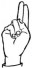 На ћирилици написано ЛИДИЈА ГОДОЧЕВИЋ састоји се из 15 слова [?]. Исписано ћириличном једноручном азбуком за глувонеме: